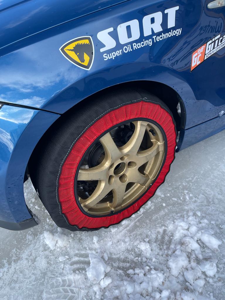 Test urządzenia ułatwiającego jazdę po śniegu.